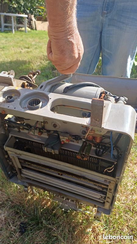 L’appareil que j’ai trouvé ne dispose ni de son capot ni de son alimentation. Il est équipé d’un moteur 48VCC et ne dispose ni du perforateur ni du lecteur de bandes.