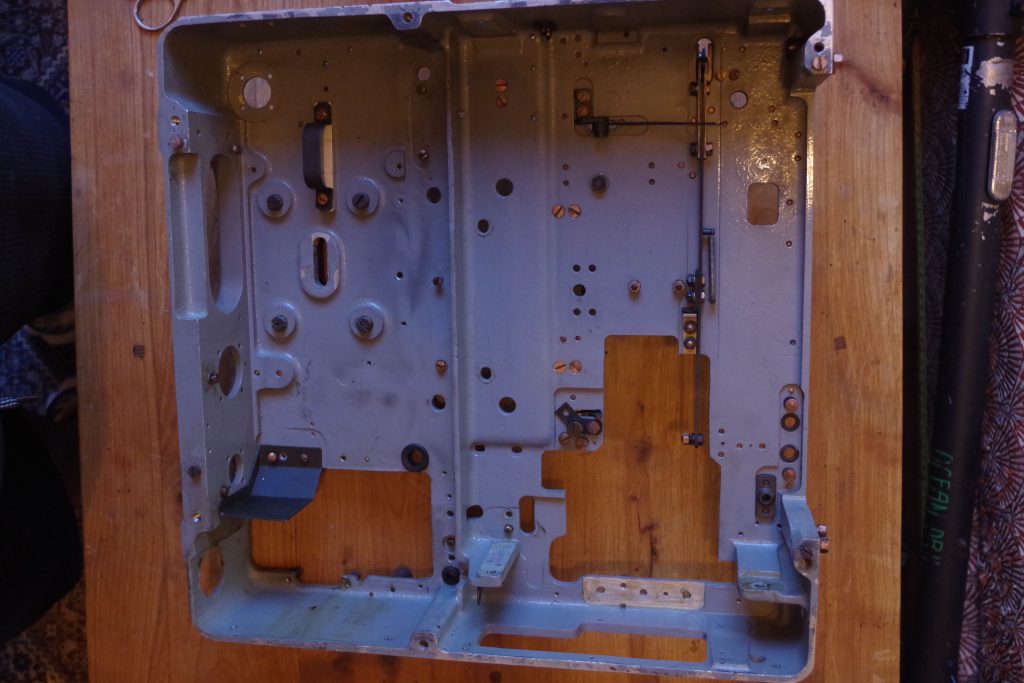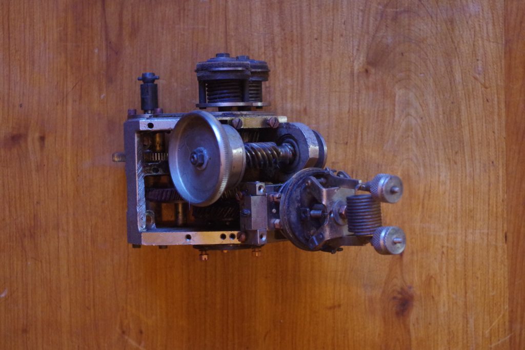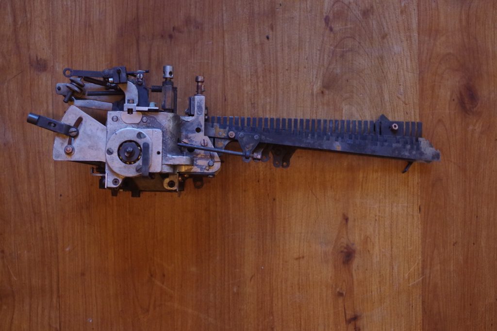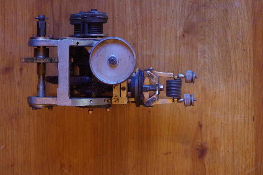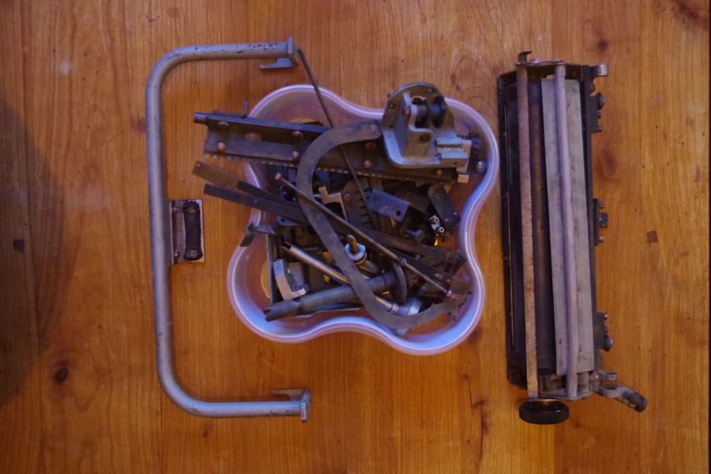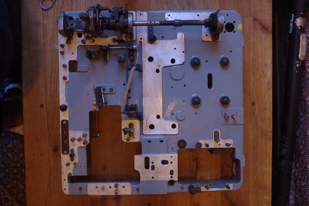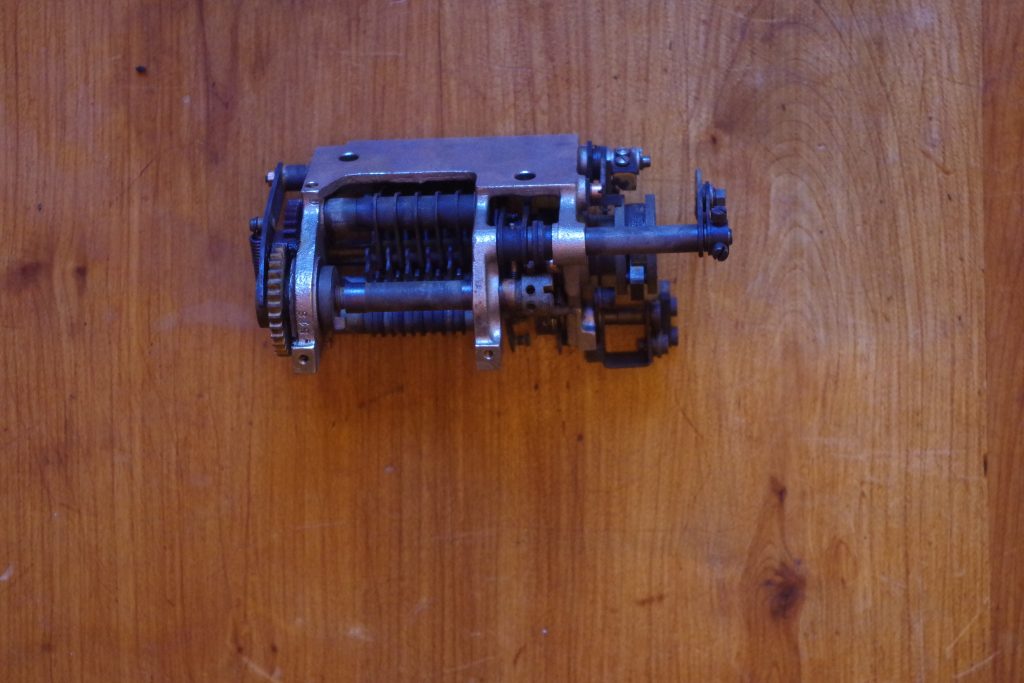 Le télex SP5 était vraiment très sale, feuilles mortes, humus, poils d’animaux, graisse séchée… Je n’ai pas eu d’autre choix que de démonter au maximum l’appareil. Par chance les différents mécanismes ne sont pas synchronisés entre eux : il y à des embrayages séparés sur chaque mécanisme. Et une confirmation importante pendant le démontage : toutes les pièces et les ressorts sont bien là.