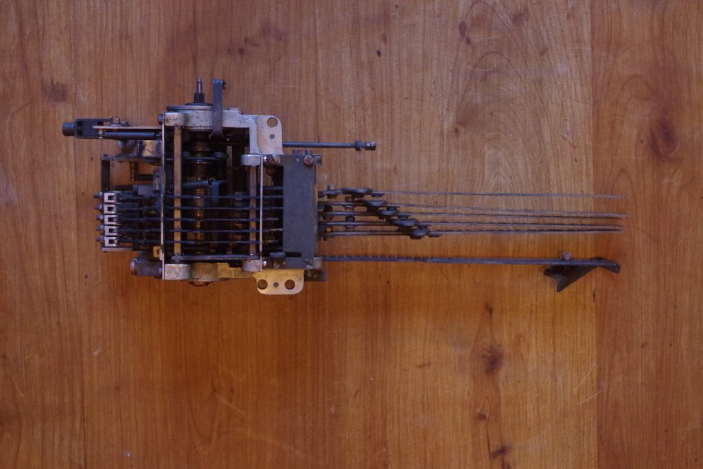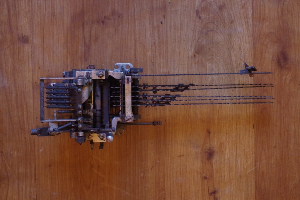 Chacune de ces trois sources déplace directement ou indirectement les taquets de transfert puis cette position est transmise aux barres de l’emmagasineur. Les fentes sur ces barres sont prévues pour ne laisser qu’une et une seule barre d’impression descendre à la fois.