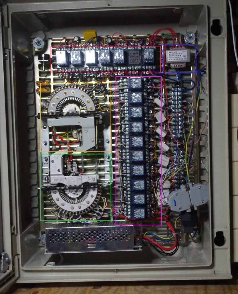 - Rose : 9 relais de lignes Lx et le relais F en haut